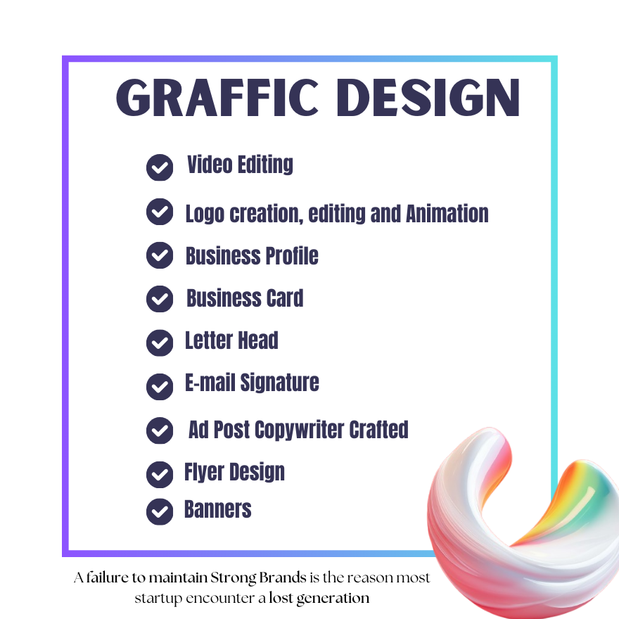 Alright, lady and Gentlemen, picture this graphic design that’ll blow your freakin’ mind! We’re talkin’ top-notch video editing, smooth as a jiu-jitsu roll, cuttin’ and slicin’ footage like a champ. Then, bam logo creation, editing, and animation, all flowing with wild energy, like a psychedelic trip through the jungle! Business profiles that scream pro, business cards that hit ya like a punch from a heavyweight, and letterheads so clean they’d make your grandma proud. E-mail signatures with swagger, ad post copy crafted with the precision of a sniper, flyer designs that pop off the page, and banners so bold they’d stop traffic on the highway! That’s why most startups crash and burn, bro, lost in the chaos! What a ride, huh?